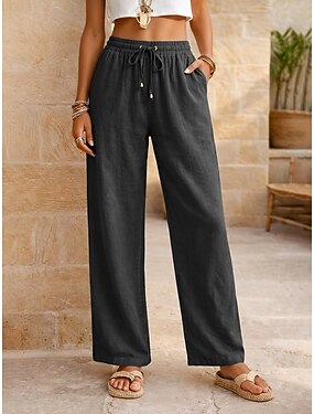 Per donna Pantaloni in cotone e lino Pantaloni Estivi Pantaloni Vacanza Essenziale Casual Quotidiano Lunghezza intera Naturale Semplice Coulisse Tasca Frontale Comodità Traspirabilità Confortevole