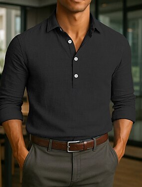 Per uomo Camicia Camicia di lino Camicia popover Camicia Estiva Abbigliamento da spiaggia Semplice Vacanza Casual Giallo Chiaro Nero Bianco Blu marino Manica Lunga Henley Estate Primavera