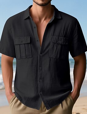 Per uomo Camicia Camicia di lino Camicia Estiva Abbigliamento da spiaggia Camicia con Bottoni Camicia cargo Tinta unica Vacanza Streetwear Nero Bianco Blu marino Blu Manica Corta Collo ripiegato