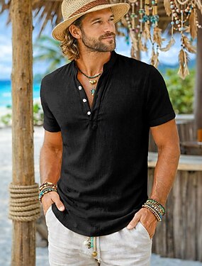 Per uomo Camicia di lino Camicia Estiva Abbigliamento da spiaggia Camicia casual Camicia con colletto alla coreana Tinta unica Casuale Quotidiano Nero Bianco Verde chiaro Blu Manica Corta Henley