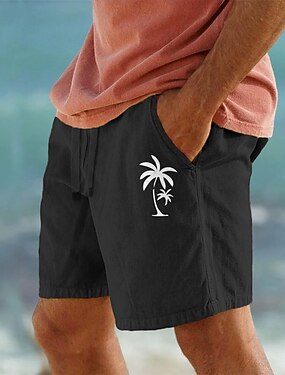 Per uomo Shorts Shorts di Lino Pantaloncini Estivi Shorts da Spiaggia Tasca Coulisse Elastico in vita Semplice Comodità Traspirante Corto Vacanza Ferie Spiaggia Hawaiano Boho Nero Azzurro