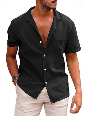 Per uomo Camicia Camicia bianca di cotone Camicia casual Camicia in cotone e lino Semplice Vacanza Streetwear Nero Bianco Blu marino Azzurro cielo Manica Corta Collo Camp Estate Abbigliamento