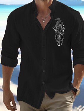Per uomo Camicia Camicia da Spiaggia Camicia con Bottoni Bussola All'aperto Vacanza Nero Bianco Rosa Arancione Manica Lunga Colletto Mao Primavera & Autunno Abbigliamento Stampato
