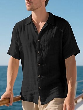 Per uomo Camicia camicia di lino Camicia estiva Abbigliamento mare Liscio Informale Giornaliero Nero Bianco Rosa Blu marino scuro Manica corta Colletto Estate Primavera Abbigliamento