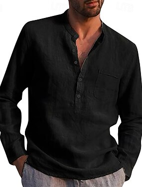 Per uomo Camicia camicia di lino Camicia popover Maglietta informale Camicia di cotone Liscio Hawaiano Per eventi Nero Bianco Vino Blu marino Manica lunga Colletto alla coreana Primavera & Autunno