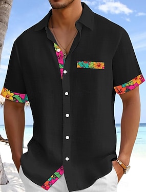 Per uomo Camicia Camicia di lino Camicia Estiva Abbigliamento da spiaggia Semplice Vacanza Casuale Nero Bianco Rosa Blu Maniche Corte Bavero Estate Primavera & Estate Abbigliamento