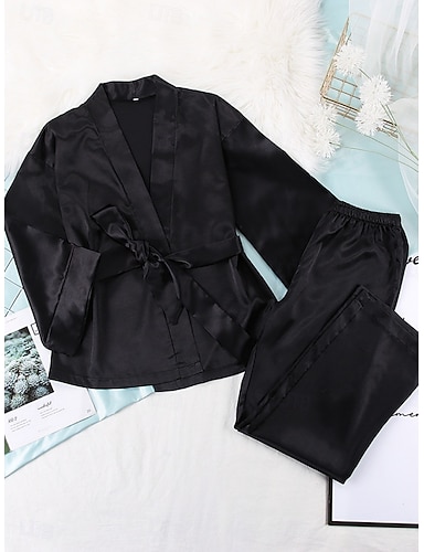 Per donna Accappatoio Camicia da Notte Set Pigiama Casual Morbido Raso Colore Puro Pizzo Vestiti Quotidiano Casa Da letto Manica Lunga Spalline Nero Bianco Rosa Vino Marrone Estate Vestibilit
