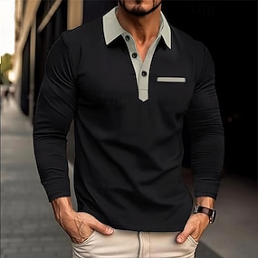 Per uomo Camicia da golf Golf polo da golf Ufficio Informale Bavero Manica lunga Essenziale Moderno Color Block Collage Pulsante Primavera & Autunno Standard Nero Bianco Rosa Rosa scuro Blu marino