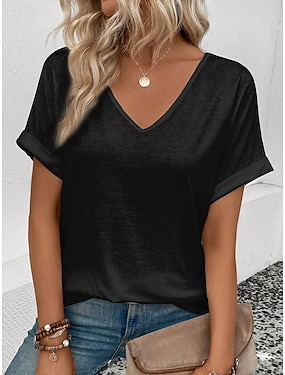 Per donna Maglietta Moda Essenziale Casual Manica Corta Scollo a V Top Regolari Quotidiano Nero Bianco Grigio Primavera, Autunno, Inverno, Estate