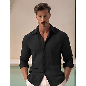 45% Lino Tasche Per uomo camicia di lino Camicia Camicia con bottoni Camicia estiva Nero Bianco Blu marino Manica lunga Liscio Bavero Primavera & Autunno Esterno Giornaliero Abbigliamento