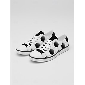 Per donna Casuale Quotidiano Giorno della partita Stampa di un pallone da calcio Tacco basso Punta Tonda Sportivo Stile a ventaglio Casual Tela Allacciatura Bianco / nero Nero