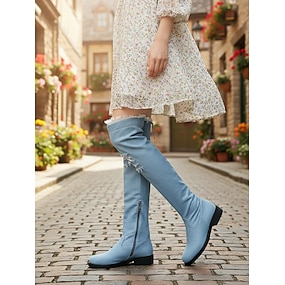 stivali bassi neri sopra il ginocchio da donna - stivali alti fino alla coscia in similpelle con suola carrarmato per abbigliamento streetwear e casual autunnali e invernali