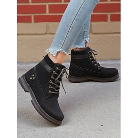 stivaletti classici con lacci da donna: stivali da lavoro resistenti in stile combattimento per outfit casual autunnali, invernali e all'aperto