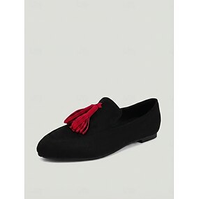 Eleganti mocassini da donna in camoscio viola: comode scarpe basse a punta con un'elegante nappina, perfette per l'ufficio e per le passeggiate in città. &abiti eleganti professionali