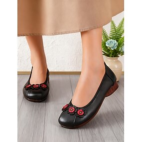 eleganti ballerine in pelle con fiori da donna | comode scarpe slip-on vintage per invitati a matrimoni, ufficio e gite primaverili