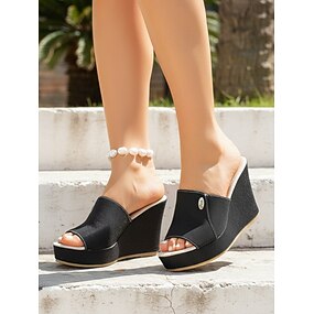 sandali da donna in similpelle con cinturino regolabile – zeppe aperte con supporto plantare, comode scarpe estive da passeggio per l'uso quotidiano
