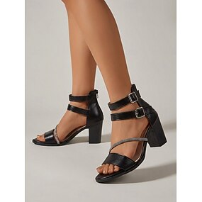 Sandali neri da donna con dettagli in strass – scarpe comode con tacco a blocco per tutti i giorni &abbigliamento da vacanza