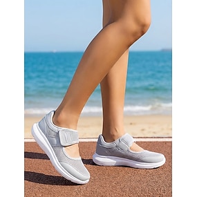 Scarpe da passeggio da donna leggere, grigio chiaro, con chiusura in velcro: scarpe sportive traspiranti in mesh, comode e dallo stile sportivo, perfette per camminare, viaggiare, per l'uso