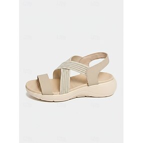 sandali sportivi beige da donna con cinturini elastici e suola ammortizzata per l'abbigliamento casual estivo e il comfort all'aria aperta