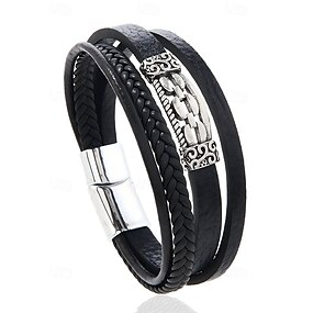 Bracciale da uomo in similpelle con croce, misura regolabile, resistente ed elegante, ideale per l'uso quotidiano e per outfit casual