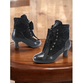 stivali da donna vittoriani con lacci a metà polpaccio con design in pizzo vintage e dettagli in finta pelle - stile retrò per cosplay, eventi formali e uso quotidiano