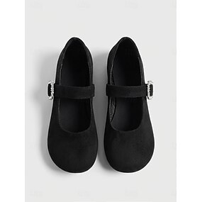 Scarpe basse Mary Jane da donna color caffè, modello ampio: comode ballerine casual a punta tonda con fibbia in strass, perfette per il lavoro, le passeggiate quotidiane e il tempo libero all'aria aperta.