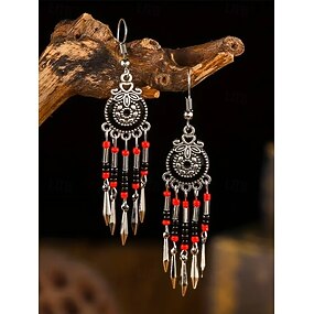 ·orecchini pendenti con perline in stile bohémien per donna - colorati rossi e blu, tribal chic, perfetti per l'estate, i festival e gli outfit casual