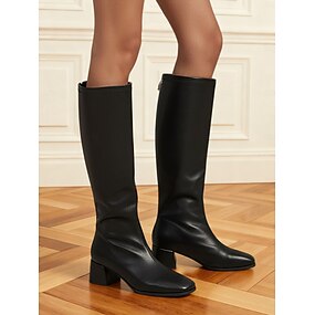 stivali alti fino al ginocchio da donna in similpelle bianca con tacco a blocco: eleganti calzature alla moda con punta quadrata per l'inverno, l'autunno e le occasioni formali