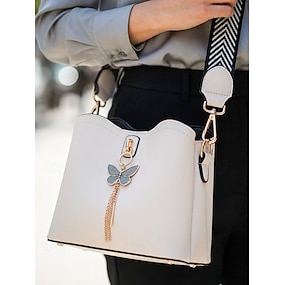 Borsa a tracolla da donna in similpelle con tracolla regolabile, ciondolo a forma di farfalla, borsetta chic e casual multicolore per l'uso quotidiano, per andare in ufficio e per le vacanze.