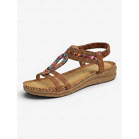 sandali bassi da donna decorati con cristalli marroni, eleganti scarpe con cinturini in stile boho per gli invitati ai matrimoni in spiaggia