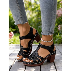 stivaletti da donna con tacco a blocco, punta aperta e cerniera posteriore – eleganti tacchi alti estivi per appuntamenti, feste in giardino ed eventi all'aperto