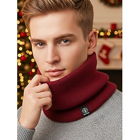 Scaldacollo invernale da uomo in maglia, scaldacollo termico foderato in pile, comodo regalo di Natale per sport all'aria aperta, sci e abbigliamento quotidiano