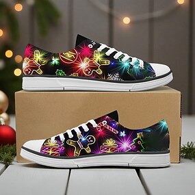 Sneakers da uomo con stampa di luci natalizie - decorazioni natalizie a LED colorate, scarpe in tela traspiranti stampate per abbigliamento casual invernale, feste e regali