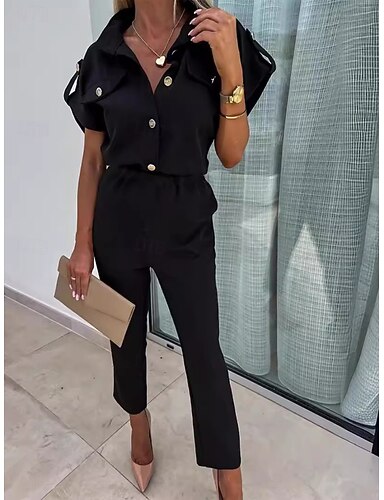 Per donna Normale Pagliaccetto Streetwear Tinta unica Manica Corta Colletto a Camicia Bottoni Streetwear Quotidiano Vestibilità regolare Nero Rosso Cachi Estate