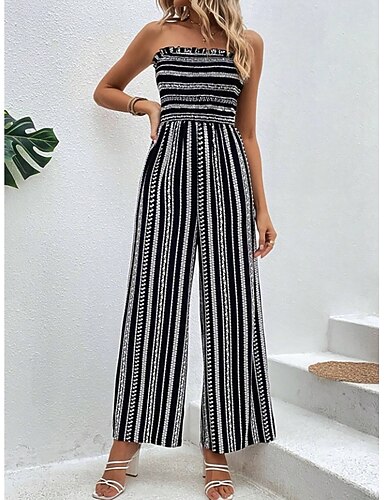 Per donna Normale Tuta Attivo Grafico Senza Maniche Gamba larga Senza Spalline Volant Quotidiano Vacanza Vestibilità regolare Nero Bianco Rosso Estate