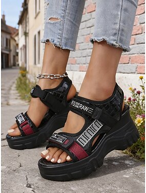 sandali sportivi da donna con plateau e strass neri - design audace con cinturino regolabile in velcro, ideali per passeggiate, escursioni e abbigliamento casual