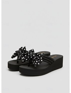 infradito da donna con fiocco a pois – sandali da spiaggia casual con comoda suola con plateau per le vacanze, l'estate e il relax a bordo piscina