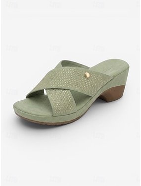 Sandali con zeppa da donna verdi con cinturino incrociato e strass – comodi sandali slip-on con plantare imbottito, tacco a punta aperta scintillante per vacanze e feste in giardino &abbigliamento