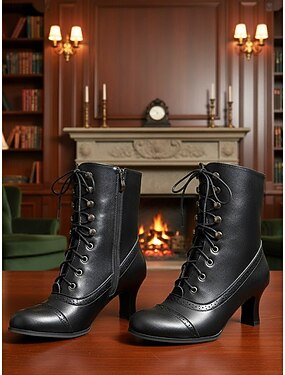 stivaletti allacciati vittoriani da donna – stivali con tacco in similpelle retrò per cosplay, feste e uso quotidiano
