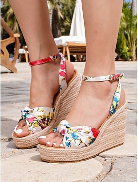 sandali con zeppa espadrillas con stampa floreale da donna e cinturino alla caviglia – tacchi a zeppa per vacanze tropicali, per feste in spiaggia e outfit estivi