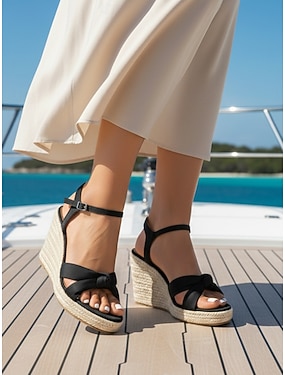 sandali con zeppa espadrillas neri da donna - eleganti tacchi a spillo con cinturino incrociato e cinturino alla caviglia per vacanze in crociera, cene formali sul ponte &abbigliamento da resort