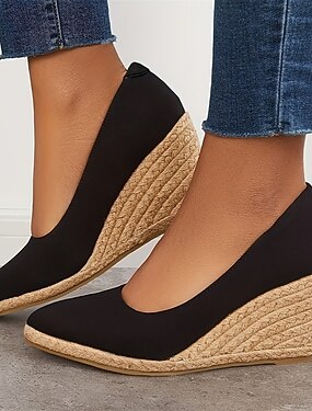 Scarpe con zeppa in tela nera da donna – scarpe espadrillas con plateau e suola in iuta intrecciata per outfit casual estivi, vacanze al mare e abbigliamento quotidiano