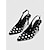 décolleté a pois da donna - eleganti tacchi a spillo neri e bianchi con fiocco &dettagli di perle per feste vintage, eventi rockabilly &abbigliamento classico da ufficio