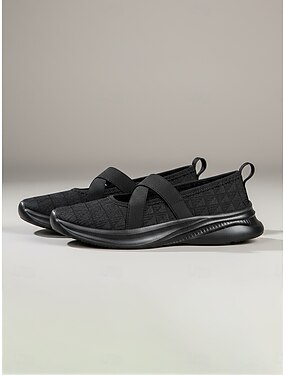 Sneakers Mary Jane da donna bianche in mesh: scarpe comode, leggere e traspiranti con cinturino elastico, ideali per l'uso quotidiano, i viaggi e il lavoro.