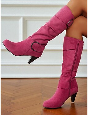 stivali alti fino al ginocchio in pelle scamosciata rosa da donna con fibbia – eleganti stivali invernali con tacco medio per outfit da festa, feste di San Valentino e look street fashion
