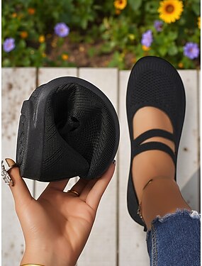 ballerine Mary Jane larghe con cinturini incrociati in maglia da donna – scarpe leggere in Flyknit a piedi nudi per la primavera e l'uso quotidiano