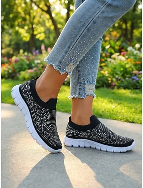 scarpe da ginnastica slip-on da donna con strass rosa - tomaia in Flyknit traspirante, leggere &scarpe sportive casual scintillanti per camminare, fare jogging, viaggiare, indossare ogni giorno