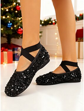 ballerine da donna con paillettes rosse e cinturino incrociato: stile festivo scintillante, perfetto per feste di Natale, feste di Capodanno ed eventi festivi informali