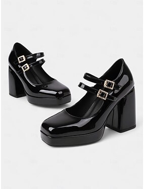 décolleté Mary Jane in similpelle verniciata retrò da donna con doppio cinturino – scarpe con tacco a blocco alla moda per feste di ispirazione vintage o outfit casual