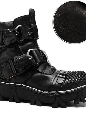 stivali da combattimento con fibbia a teschio gotici steampunk da uomo con suola robusta - stivaletti allacciati in pelle marrone vintage per motociclisti e cosplay